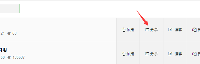 1、在全景项目列表中点击需要代码的全景中的“分享按钮”,如下图: