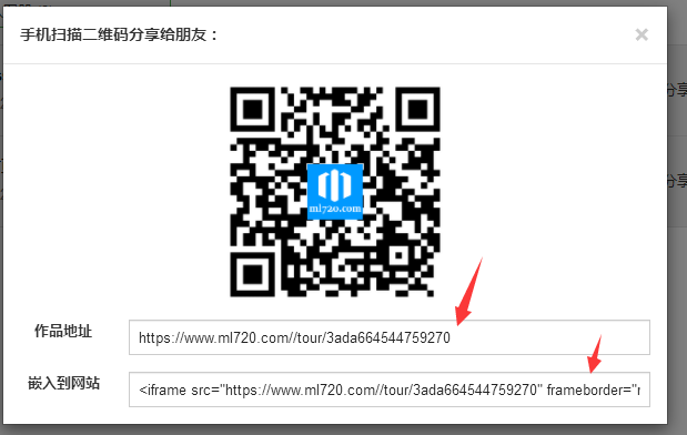 2、在弹出框中复制“嵌入到网站”后面文件框中的内容放到要分享的地方即可。(后期此处会增加一个复制按钮)。
